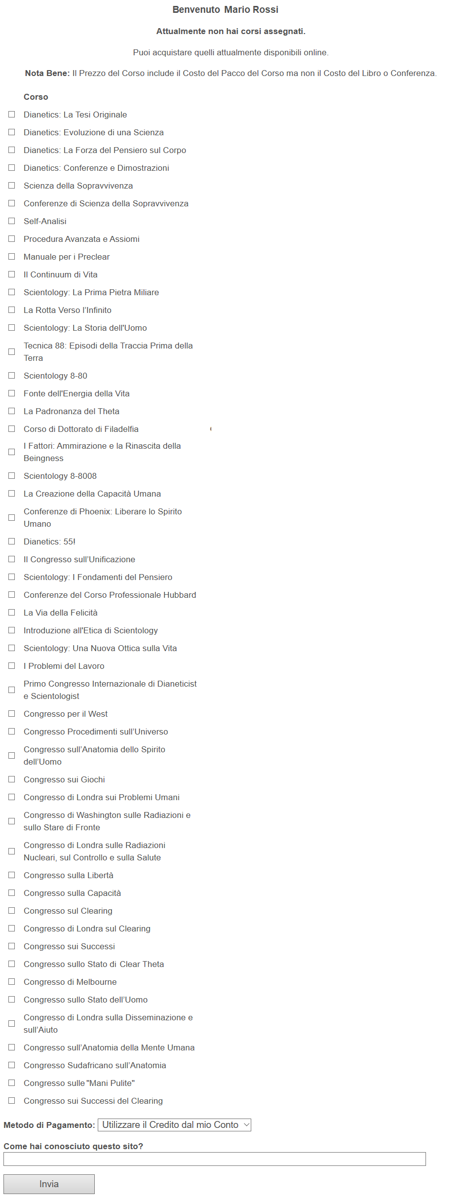Step 2: Al primo accesso sarai indirizzato alla pagina dei corsi dove potrai acquistarli col metodo di pagamento che preferisci.